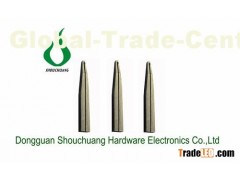 ShouChuang the special spot welding head of enamelled wire spot welder machine: it have Plane shape, Inclined plane shape, V shape, spherical shape and when welding will have the characteristics of welding point shine, reliable, stable, less signal attenuation precision process, the welding tip connection surface is tiny, beautiful welding surface, lower voltage, welding effect is efficient and the welding point is stable. Moreover, our Ti/Mo/Tungsten alloy has the advantage of welding point stable and long service life. Welding the enamelled wire、gold wire、Copper wire、aluminum foil doesn't solder and scaling powder, and follows the request of ROHS: it can reach 0.05square millimeter and have high uniformity ,it doesn’t have the poor Soldering. The enameled wire welding needn't wipe paint in advance and remove paint welding in one step; transmission interference of high frequency signal is small; the point of temperature and humidity and vibration is higher than the ordinary solder, with automatic welding platform more efficient., We will aim at different request of welding process, according to the detailed welding demands of customer to freely design the welding head which customer needs